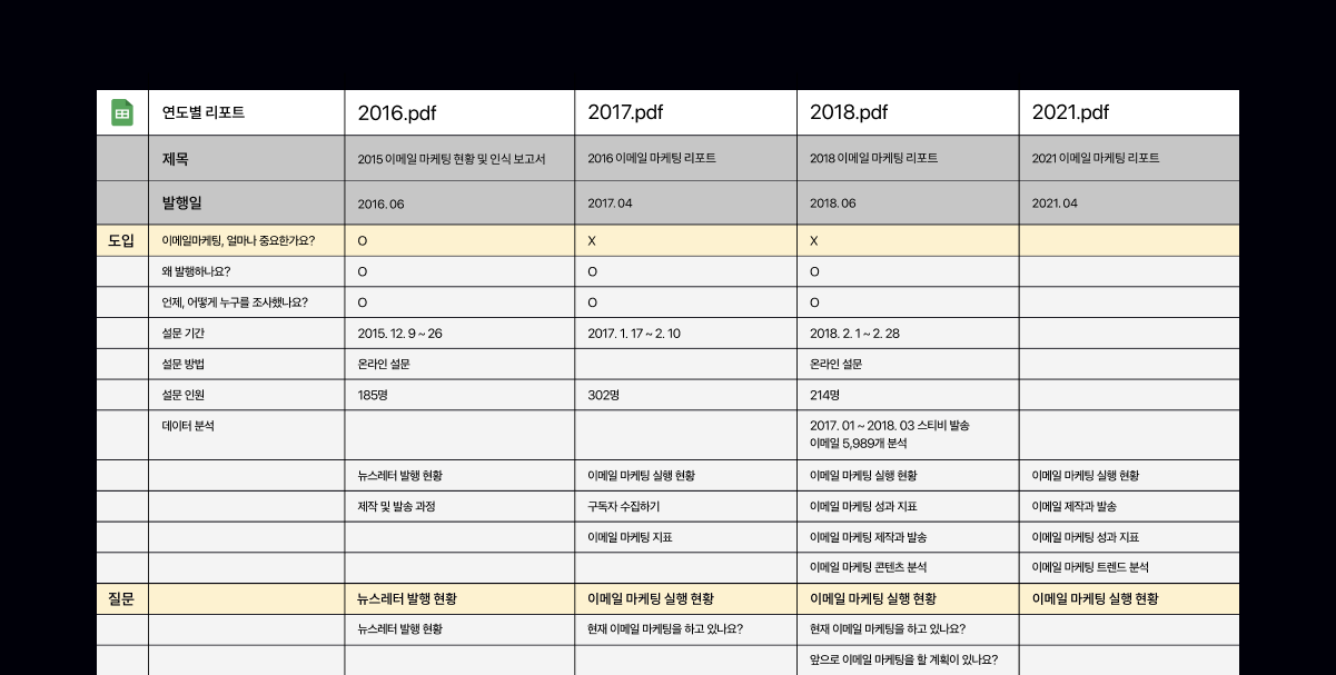 - 연도별로 꾸준히 제공해온 '스티비 이메일마케팅 보고서'